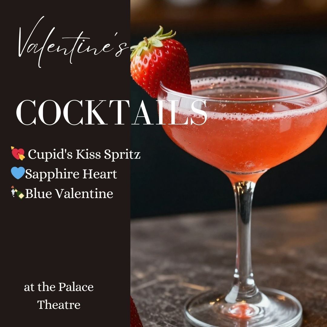 The Palace bartenders are stirring up special cocktails for Valentine’s Day. Sip on a Cupid’s Kiss Spritz (Champagne and strawberry juice), Sapphire Heart (Gin, splash of Blue Curaçao, tonic) and a Blue Valentine (Vodka, Blue Curaçao, soda). Purchase at the bar. Wine, beer, water and soft drinks are also available.